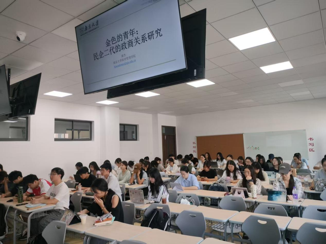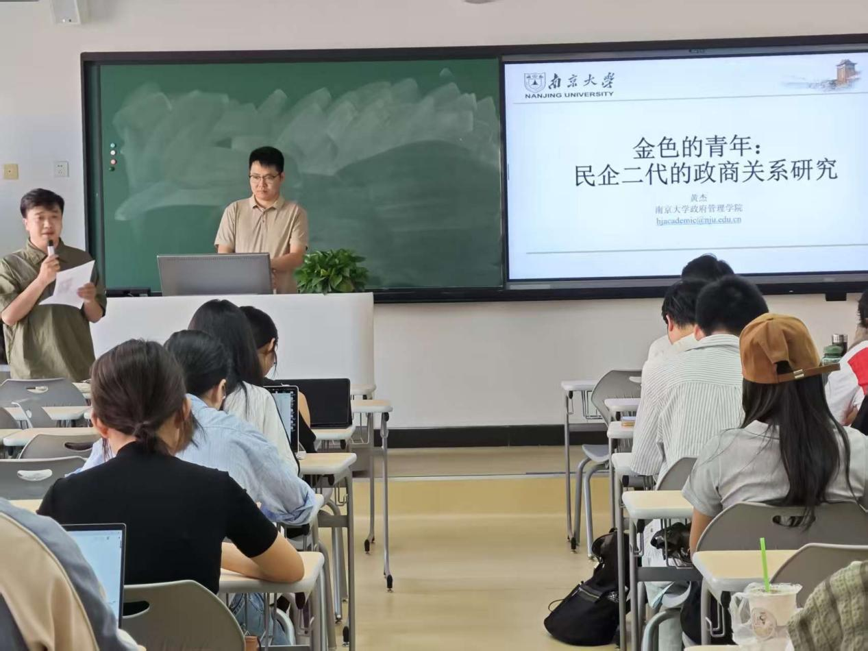 2025年10月17日上午,由法学院地方治理教研室、逻辑与计算社会科学研究中心联合承办的第71期公管名家讲座《金色的青年:民企二代政商关系研究》顺利开讲。本次名家讲座邀请南京大学政府管理学院博士生导师黄杰教授作为主讲嘉宾,在26-308教室进行。讲座由地方治理教研室主任庞康博士主持,邹建平博士以及行政管理本科生、公共管理专业和政治学专业部分研究生共同参与。