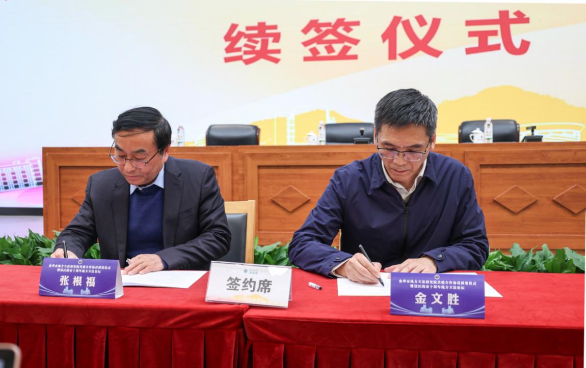 接着,金文胜与张根福分别代表金华市人大常委会和浙江师范大学续签共建“地方立法研究院”合作协议。
