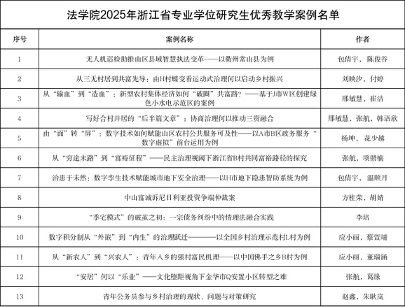 近日,浙江省研究生教育学会公布了2025年浙江省专业学位研究生优秀教学案例公示名单,我院共有13项研究生优秀教学案例获批。